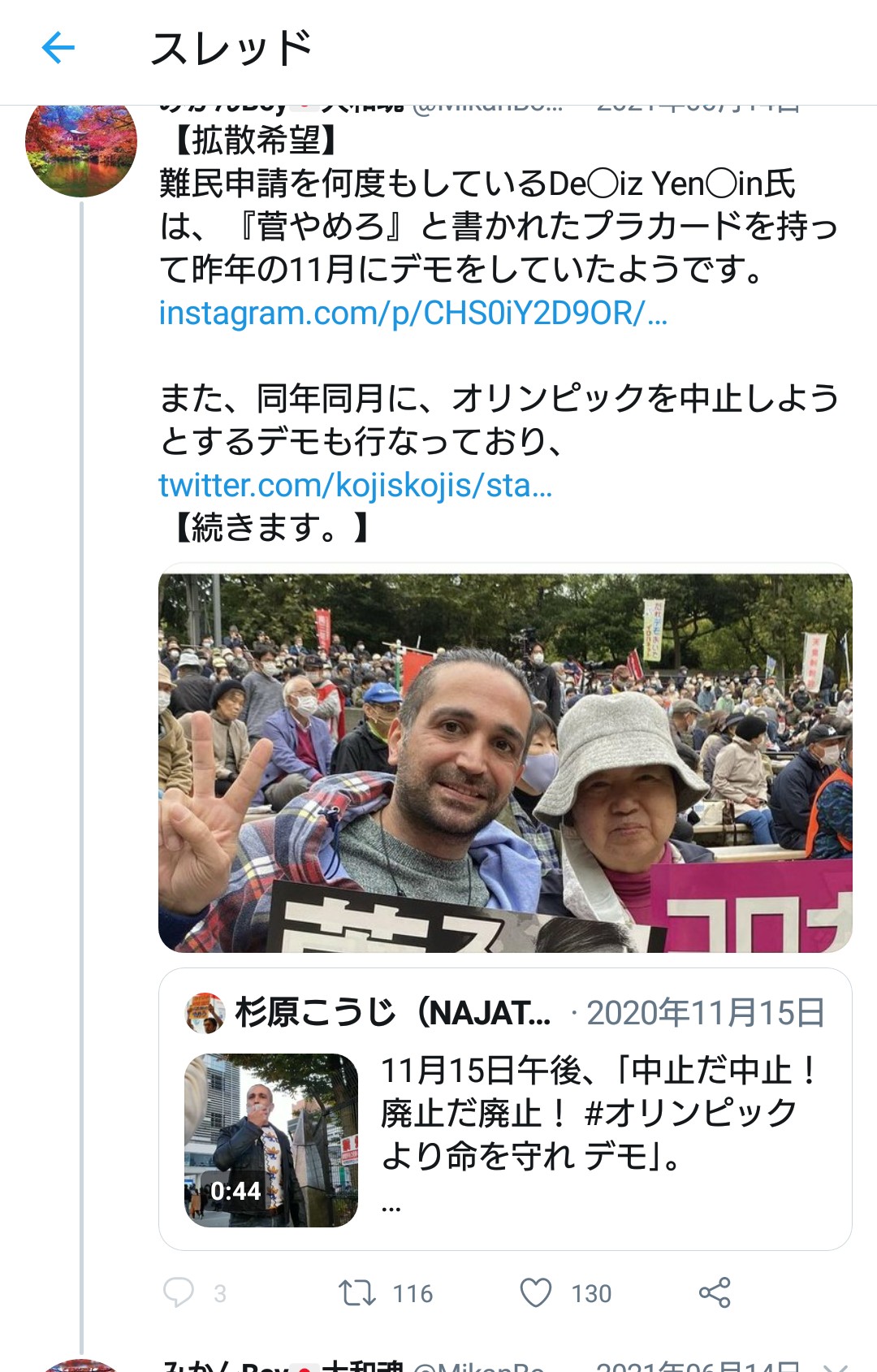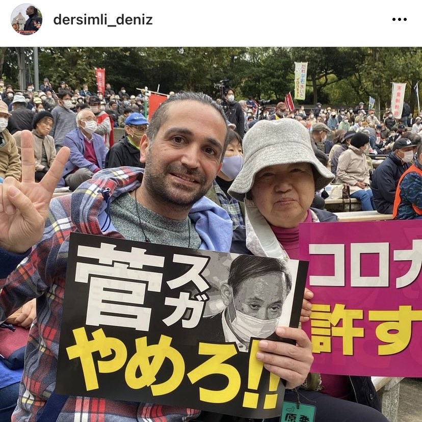 【画像】 日本への難民申請中のクルド人のデニズ 「スガはやめろ」 →反政権活動していたことが判明