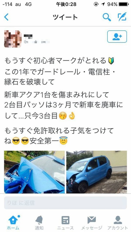 【画像】「事故りまくったけど、もう少しでダッサイ初心者マークとれる!うれしい!」