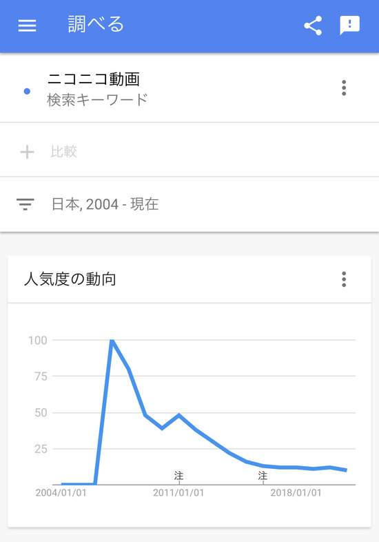【画像】『ニコニコ動画』、全盛期の『1/10』しかユーザーがいないwww
