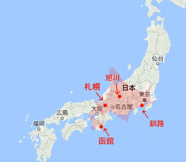 北海道内に入れるんじゃなくて北海道を本州に突っ込んだほうが分かりやすいか