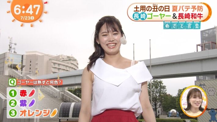 【画像】お天気お姉さん、朝からピンクのブラ紐丸出しwwwwww