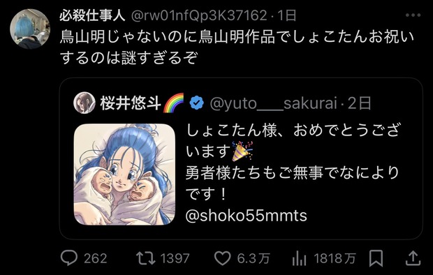 【画像】しょこたんの出産を鳥山明風イラストで祝福したツイッタラー、叩かれてるwwwwwwwwwwwwwwwwwwww