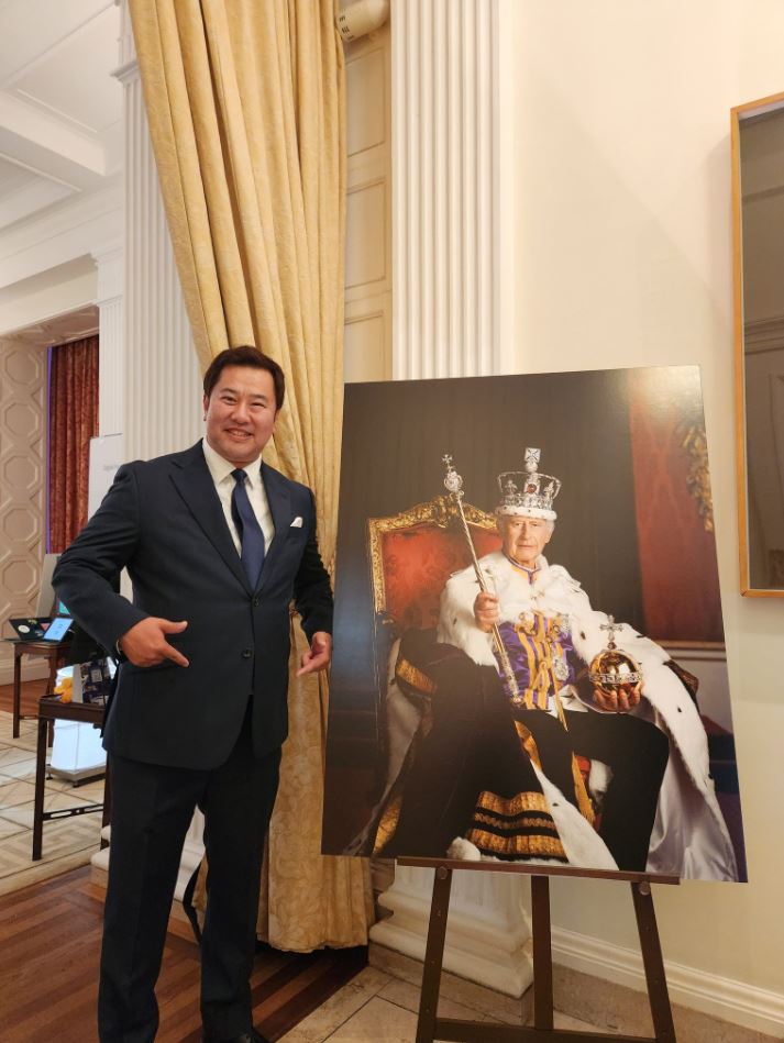 安村さんはインスタグラムで「駐日英国大使館で執り行われた、チャールズ3世国王陛下の誕生及び戴冠式祝賀会に