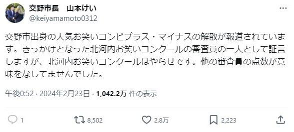 【岩橋】“やらせ疑惑”『北河内新人お笑いコンクール』2024年大会の開催延期を発表「諸事情により」