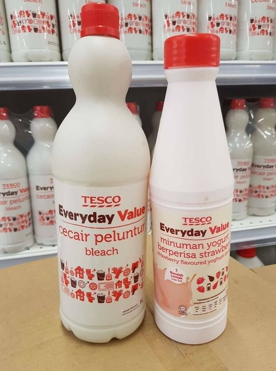 【画像】アメリカさん、"飲むヨーグルト"と"漂白剤"がそっくり過ぎる