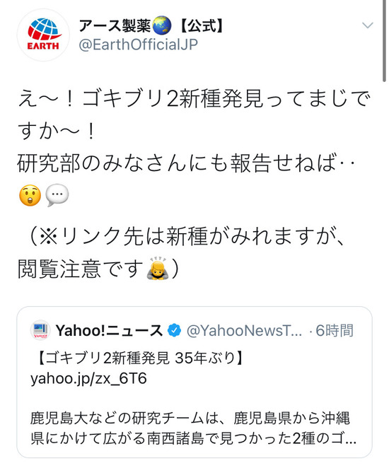 【画像】アース製薬+クラシエの心ないツイートに、ゴキブリガチ勢が激怒・・・