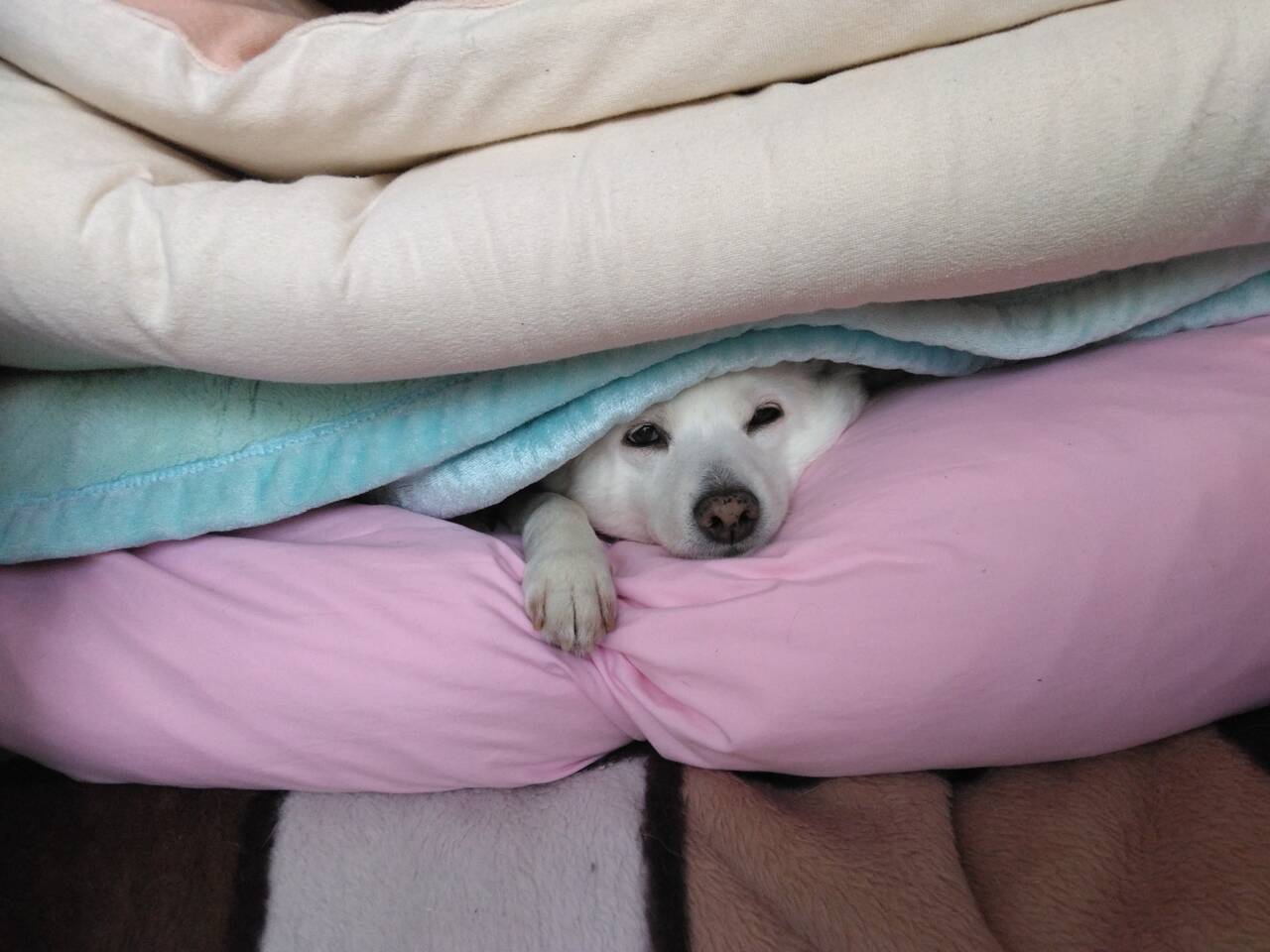 【画像】ワイのイッヌ(2)、布団の中にぐりぐり潜り込んでくるwwwww
