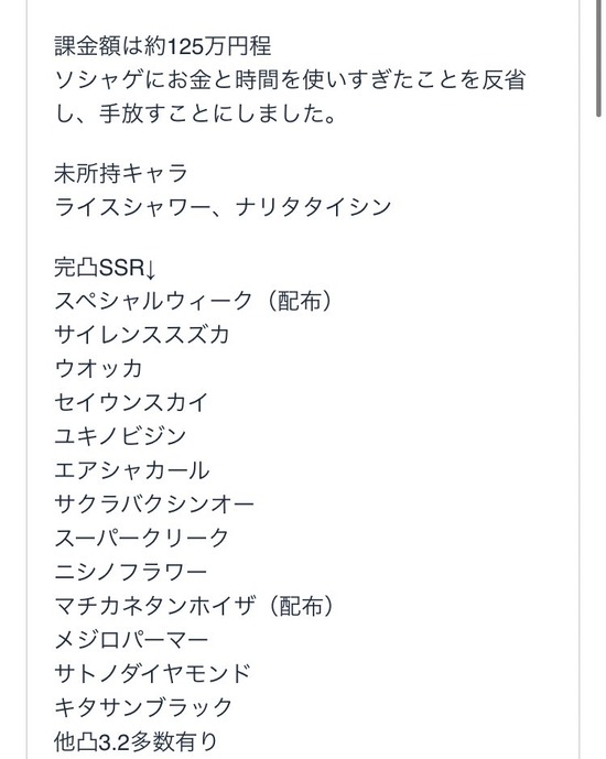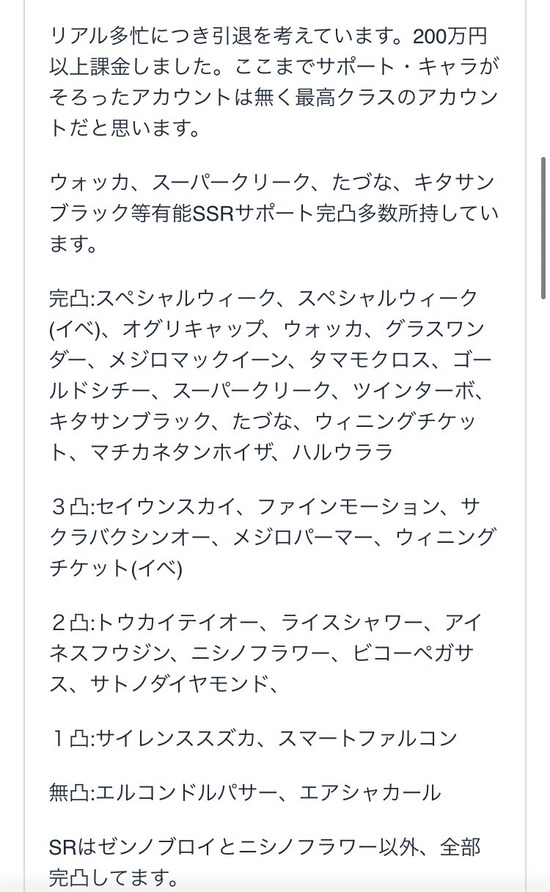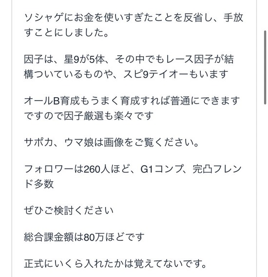【画像】ウマ娘の廃課金アカウントが売られまくってしまう……一体なぜ…………