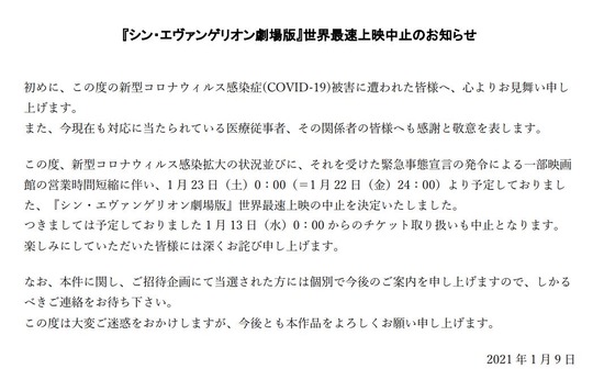 【画像】エヴァの映画、やっぱり公開中止wwwww