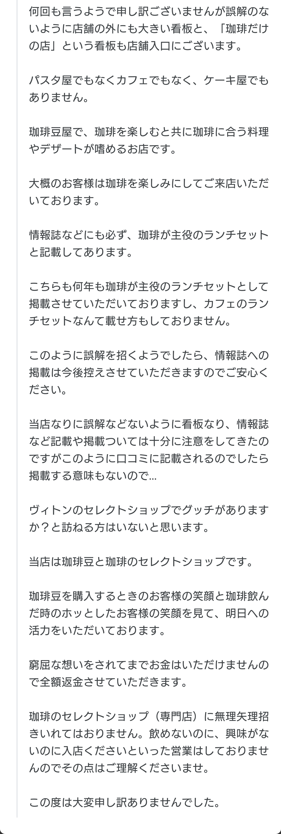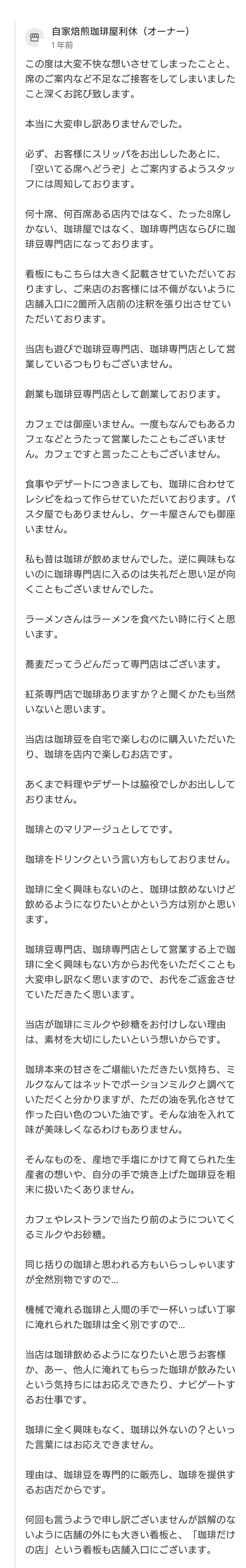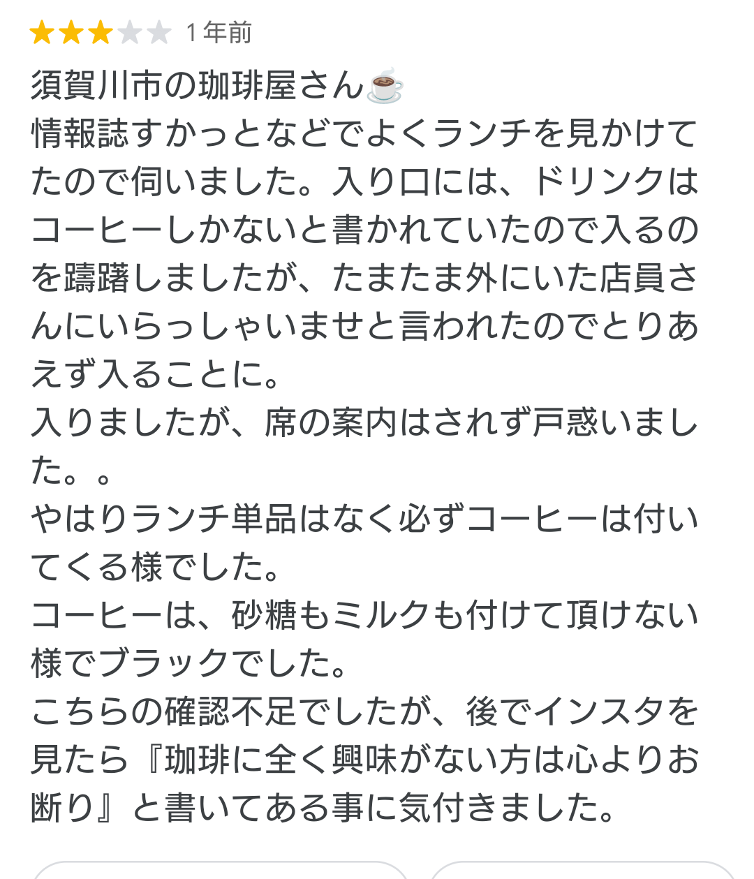【画像】コーヒー屋店主、レビューに対してお気持ち表明 多分お前らが想像する1.5倍は表明・・・