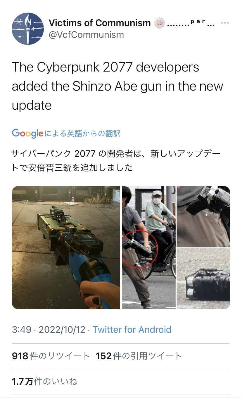 【画像】サイバーパンク2077、アップデートで山上銃を実装してしまう・・・