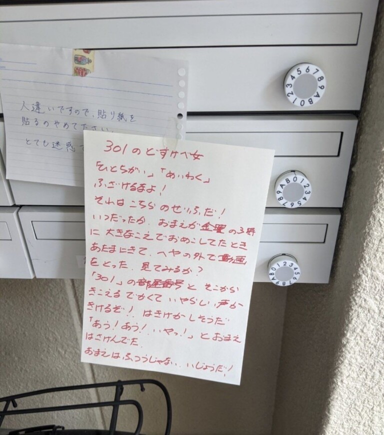 【画像】セ●クスの喘ぎ声がうるさい女さん、アパートの住民からクレーム貼られる