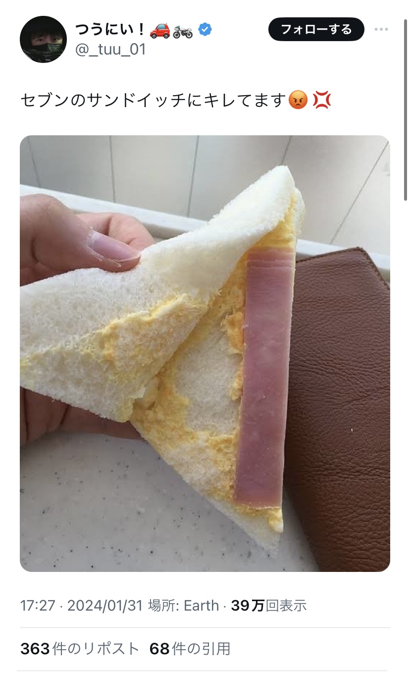 【画像】セブンのサンドイッチ ヤバすぎるwww