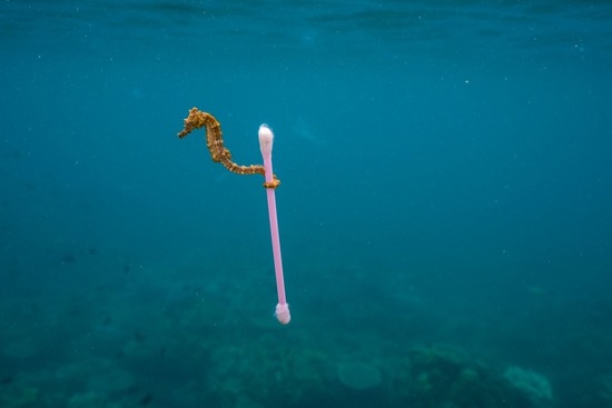 【画像】タツノオトシゴさん、綿棒をゲットwww