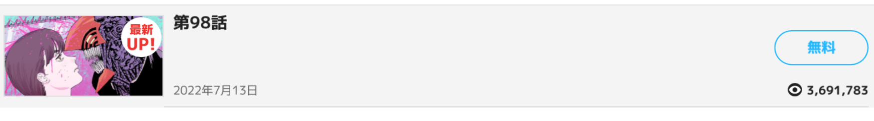 【画像】チェンソーマンさん、1日で300万PV達成。スパイファミリー・怪獣8号に格の違いを見せつけるwww