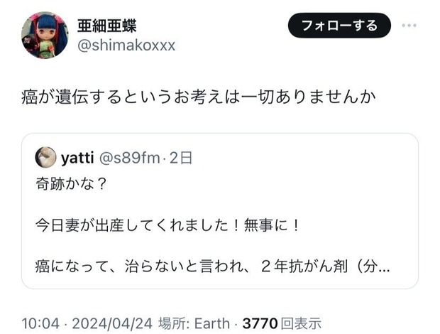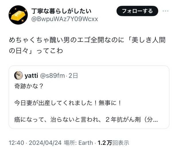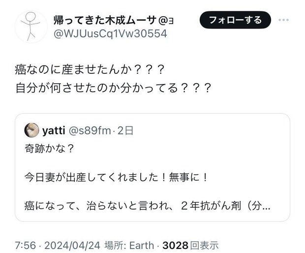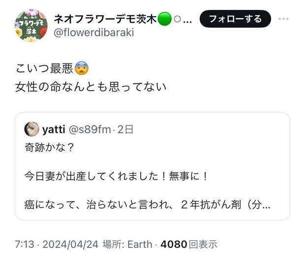 【画像】フェミニストさん達、癌患者の男性にここまで言う程鬼畜だった