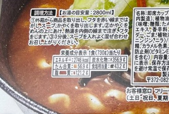 【画像】ペヤングと幸楽苑コラボの味噌野菜うどんのカロリーがやばいwww