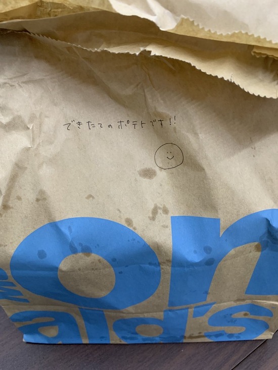 【画像】マック買ったら店員さんのメッセージ付きだったwww