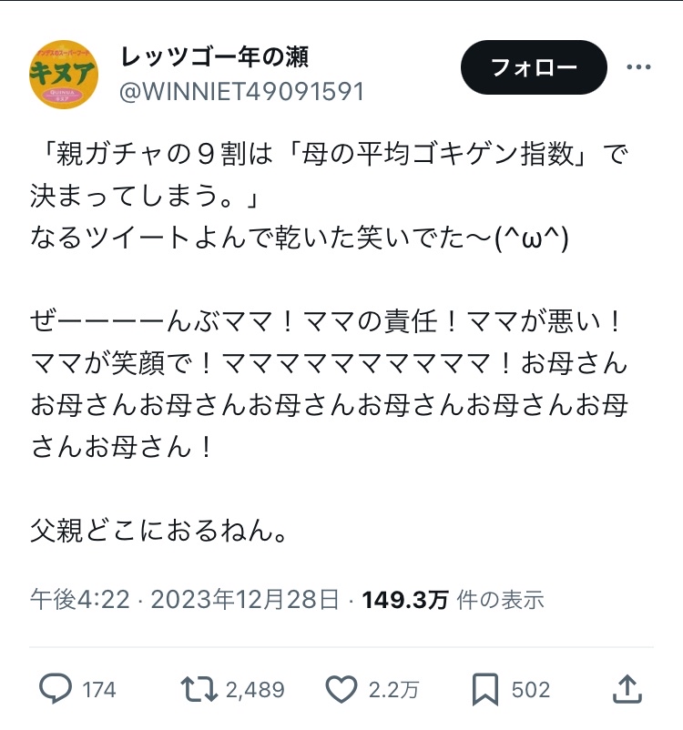 【画像】ママんさん、“ゴキゲン指数”で発狂wwwww