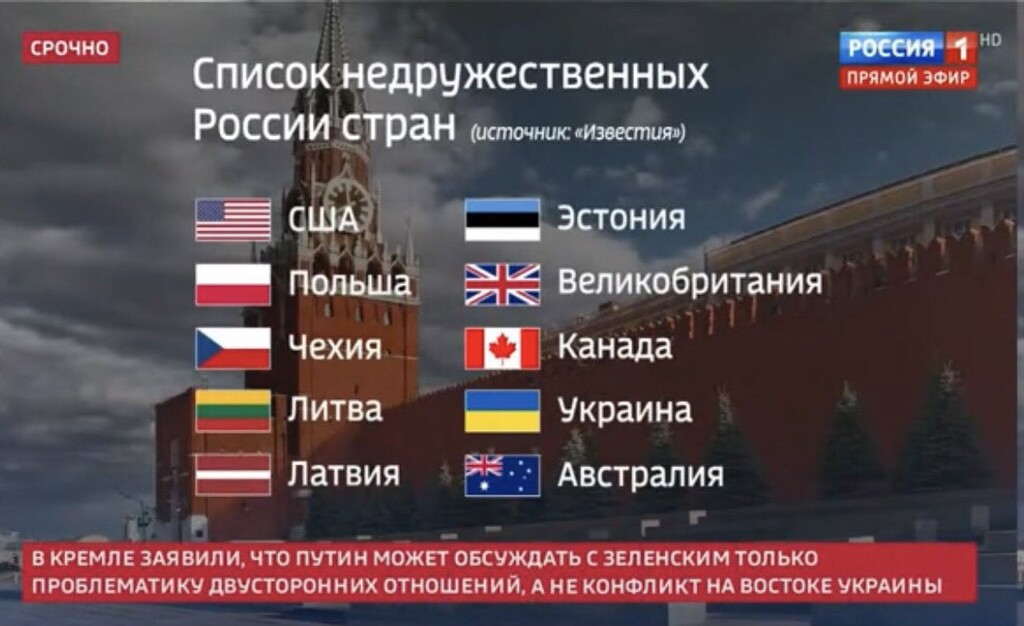 【画像】ロシアの国営テレビ、非友好国を堂々と公開ww