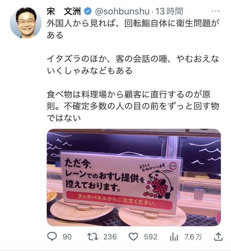 【画像】中国人、回転寿司文化を完全否定wwwwww