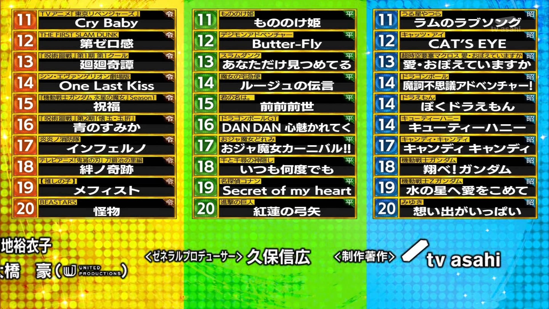 【画像】全国民が選んだ国民的アニソン国民選挙さん、案の定の結果で大炎上www