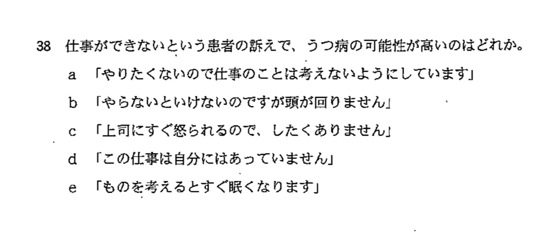 【画像】医師国家試験のうつ病の問題、難しすぎる・・・