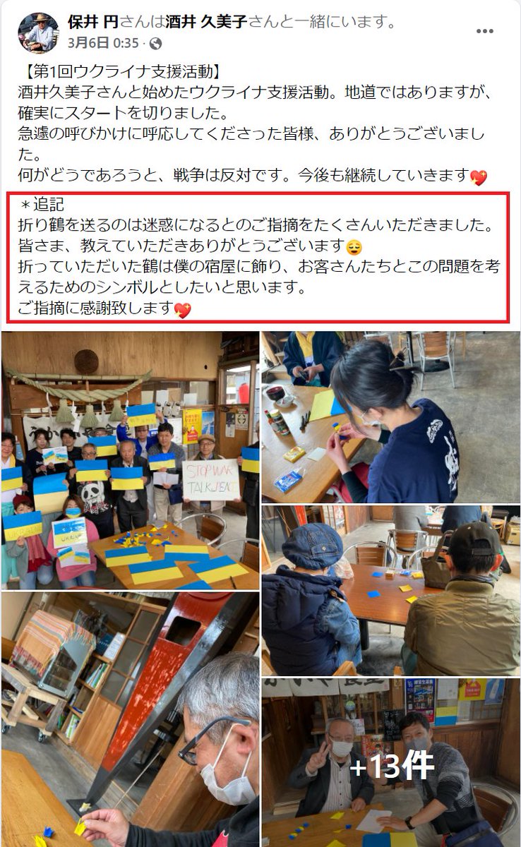 【画像】千羽鶴を折ってウクライナ大使館に送る予定だった岐阜の活動者、送るのを中止する・・・