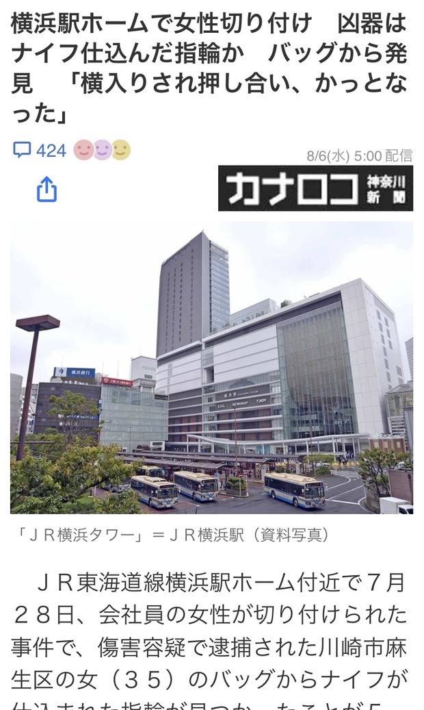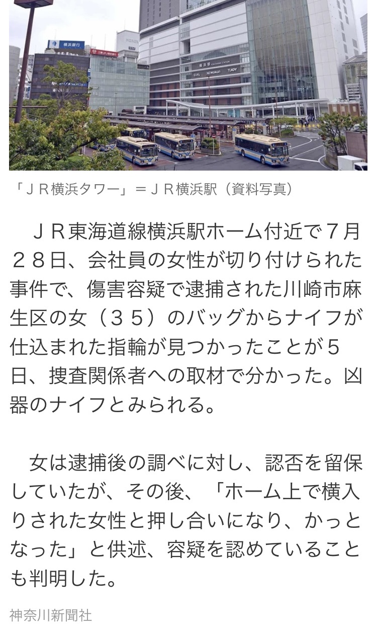 横浜駅ホームで女性切り付け 凶器はナイフ仕込んだ指輪か バッグから発見 「横入りされ押し合い、かっとなった」(カナロコ by 神奈川新聞) - Yahoo!ニュース