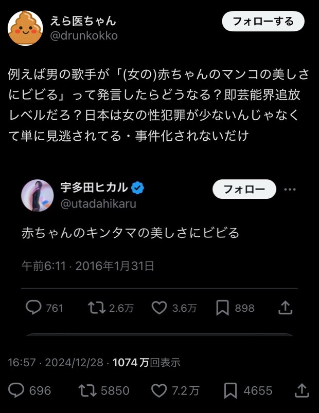 【画像】宇多田ヒカルさん、陰に掘り起こされ炎上