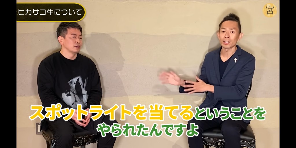 シェフ「(宮迫は)交雑種のヒカサコ牛という、本来価値の低い牛さんに、スポットライトを当てるということをやられたんですよ」