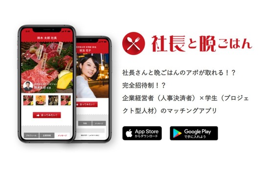 【画像】就活支援アプリ「社長と晩ごはん」、爆誕www