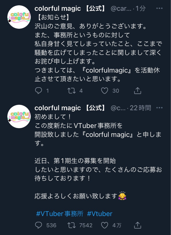 【画像】新Vtuber事務所さん、わずか22時間で活動中止してしまうwww