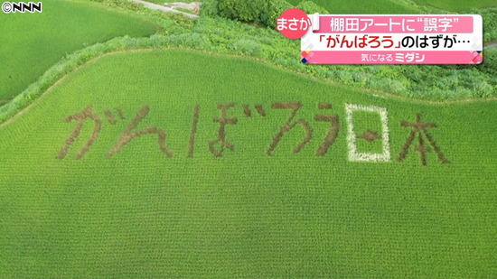 【画像】棚田アートで「がんばろう日本」が「ガン掘ろう日本」になってしまい批判殺到www