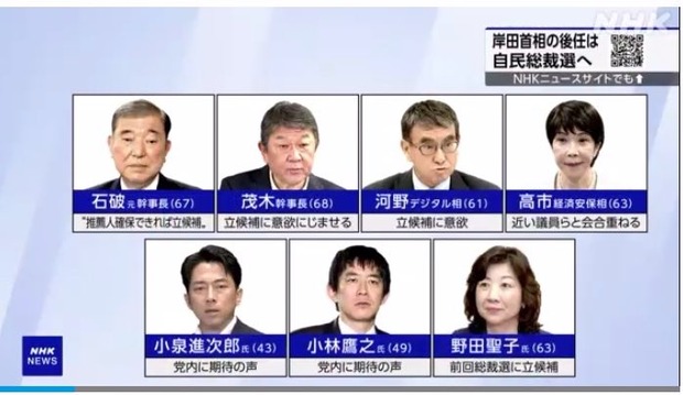 【解説】岸田首相 自民党総裁選挙に不出馬で退陣へ 総裁選は?石破 茂木 河野 高市 小泉 小林 野田各氏は? | NHK | 自民党総裁選