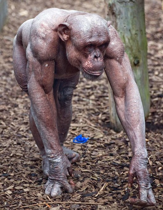 【画像】毛を剃ったチンパンジー、ガチでヤバい・・・