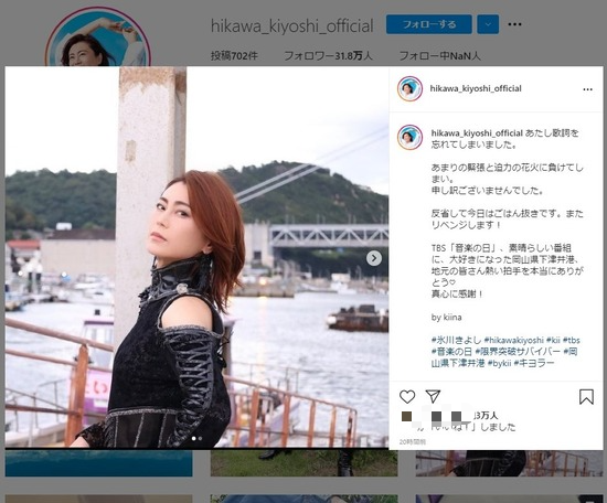 氷川きよし姉さん「あたし歌詞を忘れてしまいました」 最早隠す気ゼロ