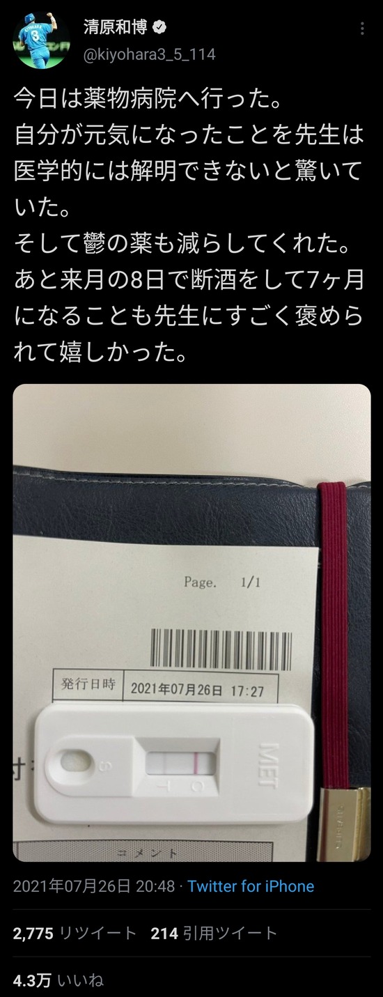 【画像】清原和博さん、何故か元気になり抗うつ剤の量を減らす・・・