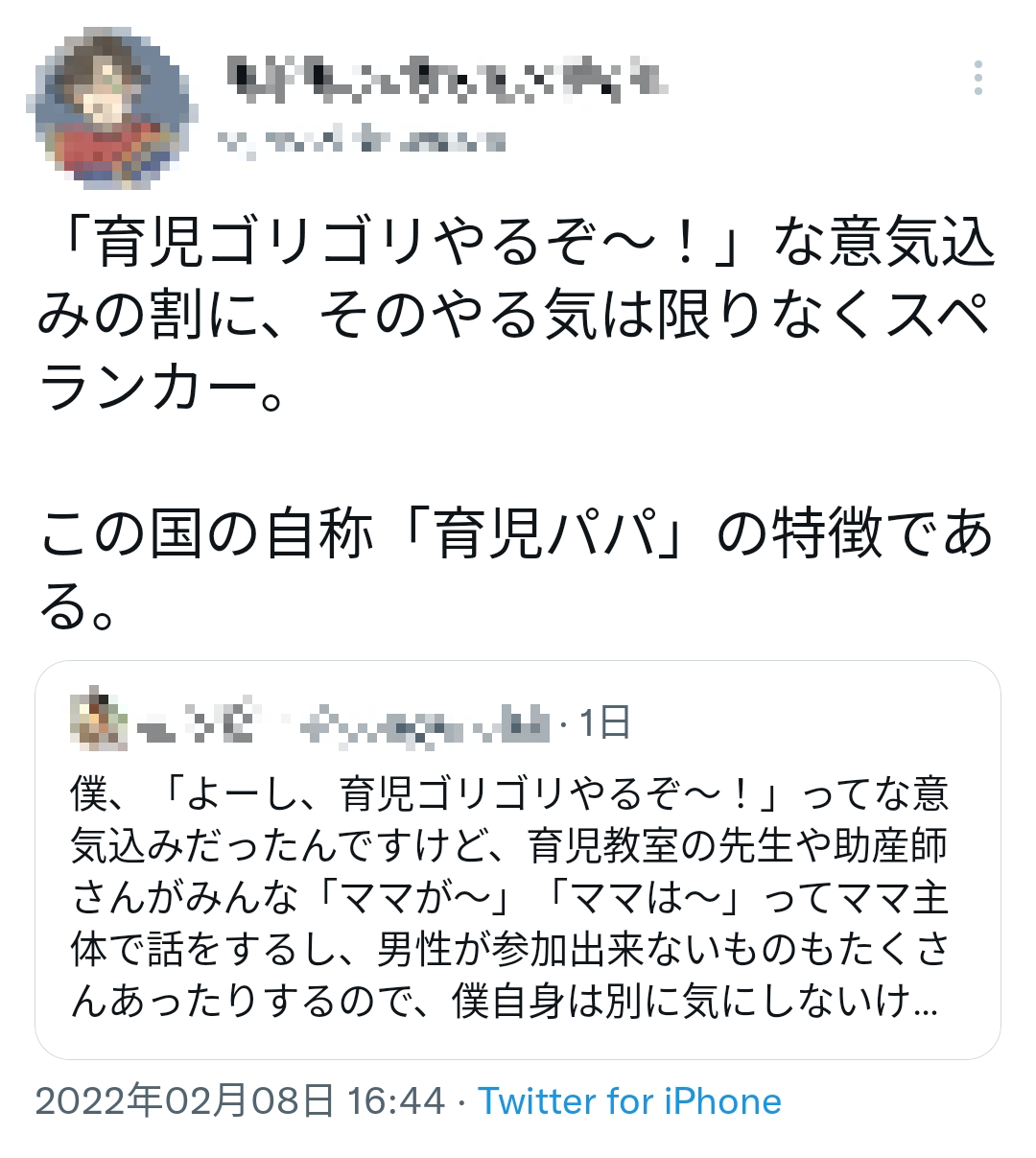 【画像】男「育児のことを母親にだけ呼びかけるのやめてほしいなぁ」→フェミ激怒www