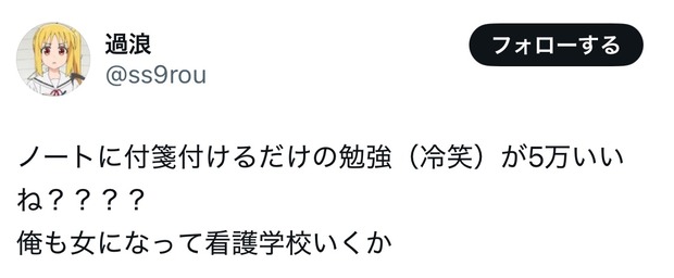 【画像】看護師になりたい女子、Xにてボコボコに叩かれてしまう