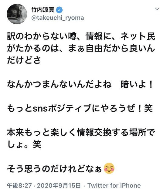 【画像】竹内涼真さん、ネット民にキレるwwwww