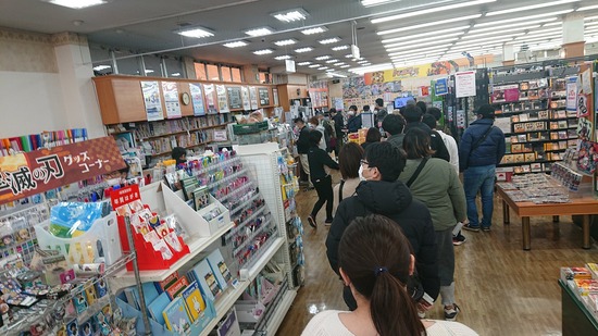 【画像】鬼滅の刃最終巻欲しさにTSUTAYAに大行列wwwwwww