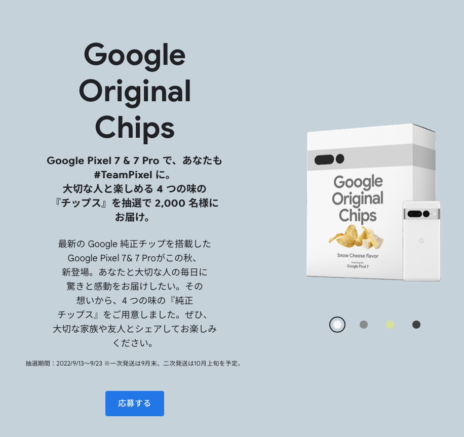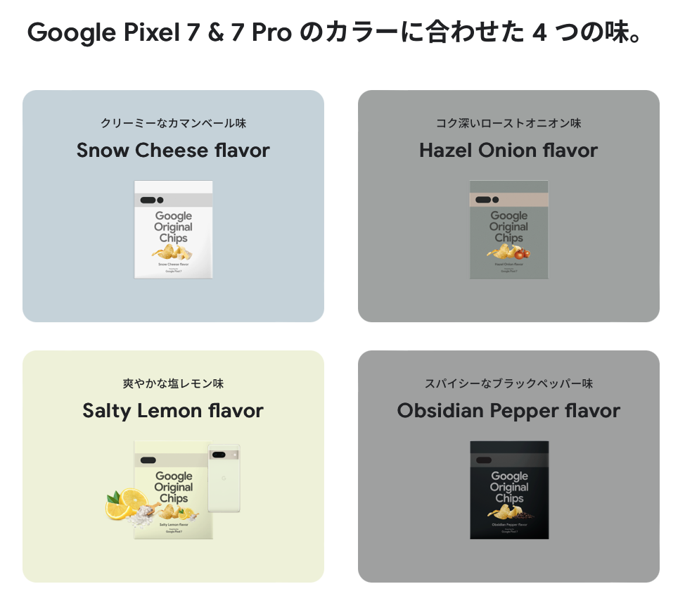 【画像】Google「Pixel7発売するぞ!だからポテトチップスあげる!」