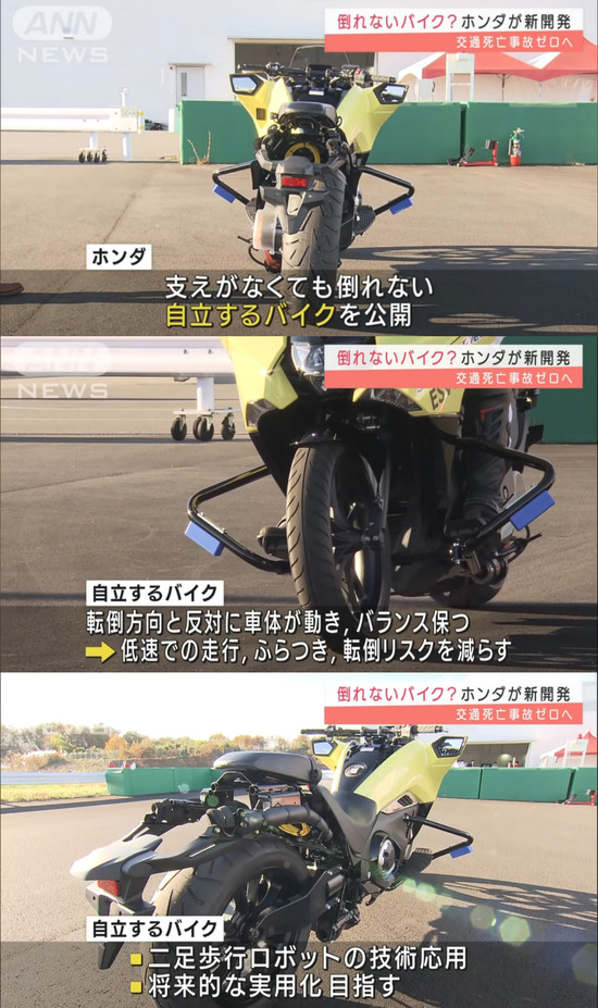 【画像】HONDAさん、ついに倒れないバイクを開発wwwwwwwww
