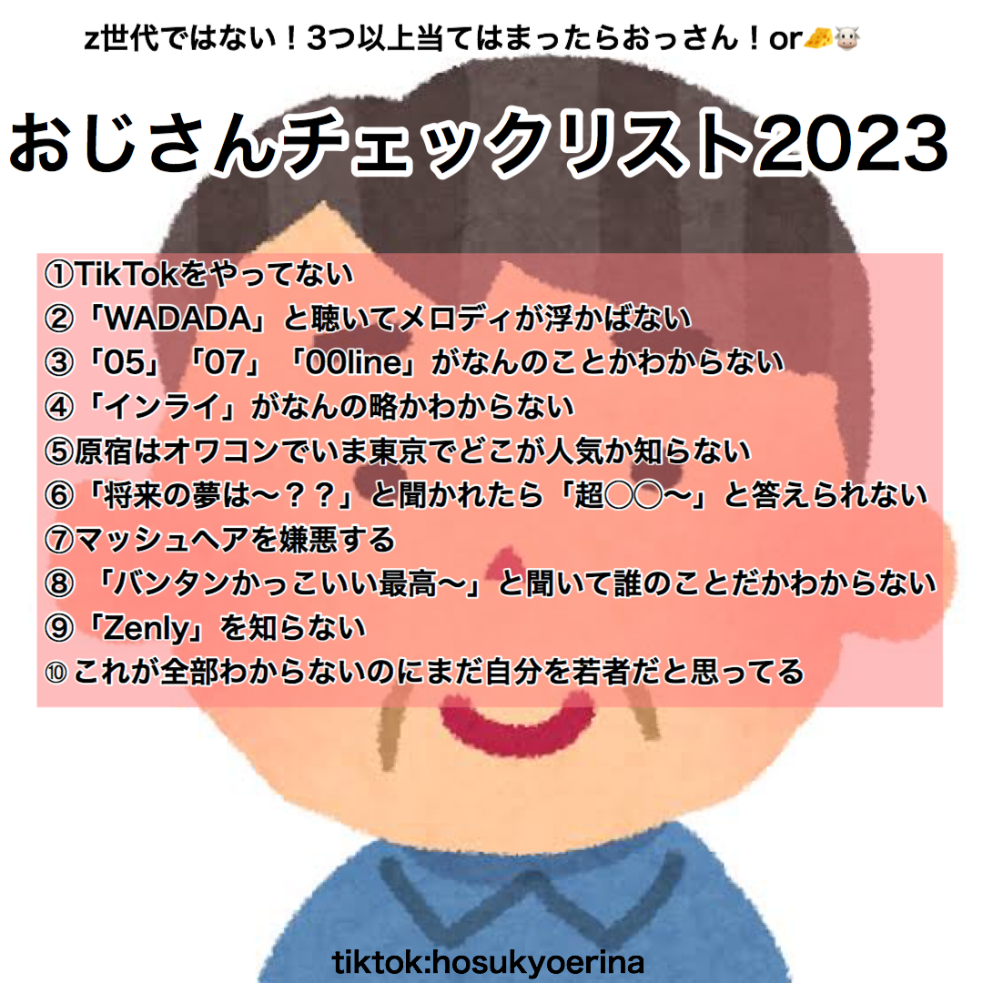 【画像】tiktok「これに3つ以上当てはまる奴はオッサン」