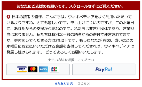 【画像】Wikipedia、嫌味タラタラ 「日本の皆様、よく利用頂いているようですね。とても嬉しいです」