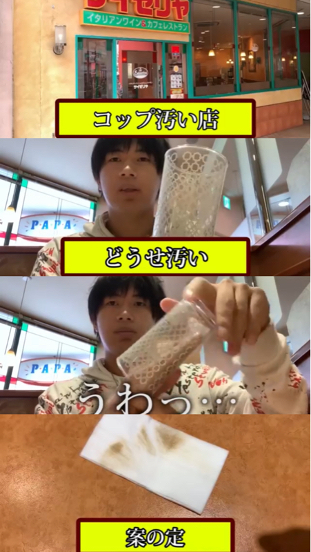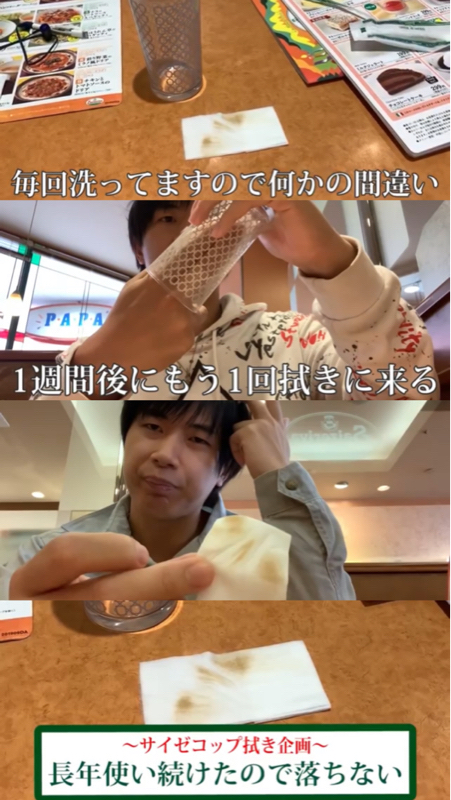 【画像】YouTuberさんの検証「ファミレスのコップがどれほど汚れてるかチェックしてみた」の結果ww