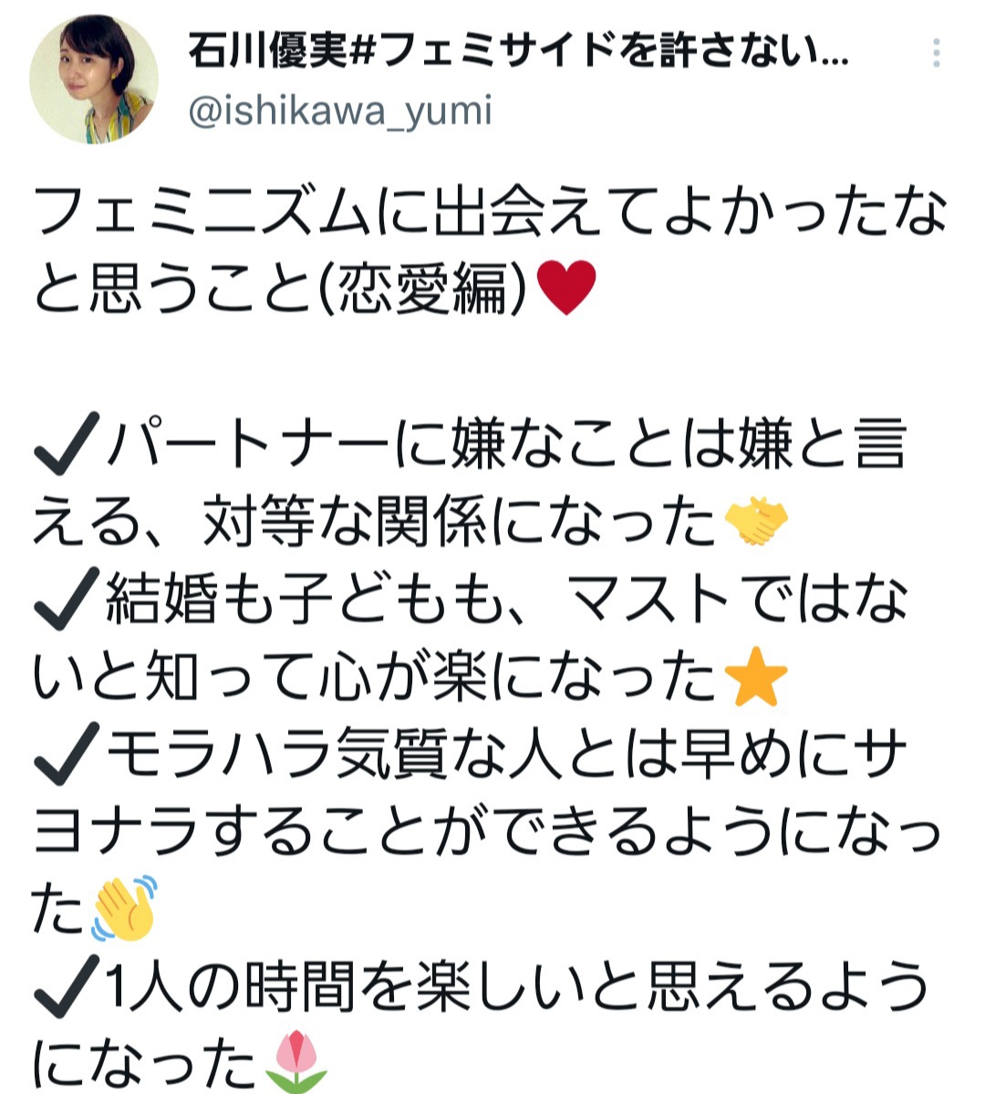 【画像あり】 フェミニストの石川優実さんが、フェミニズムに出会って”得たもの”がこちら →?
