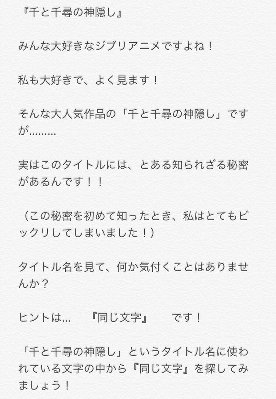 【衝撃】まとめサイト「千と千尋の神隠しのタイトルには恐るべき秘密が隠されていた!」