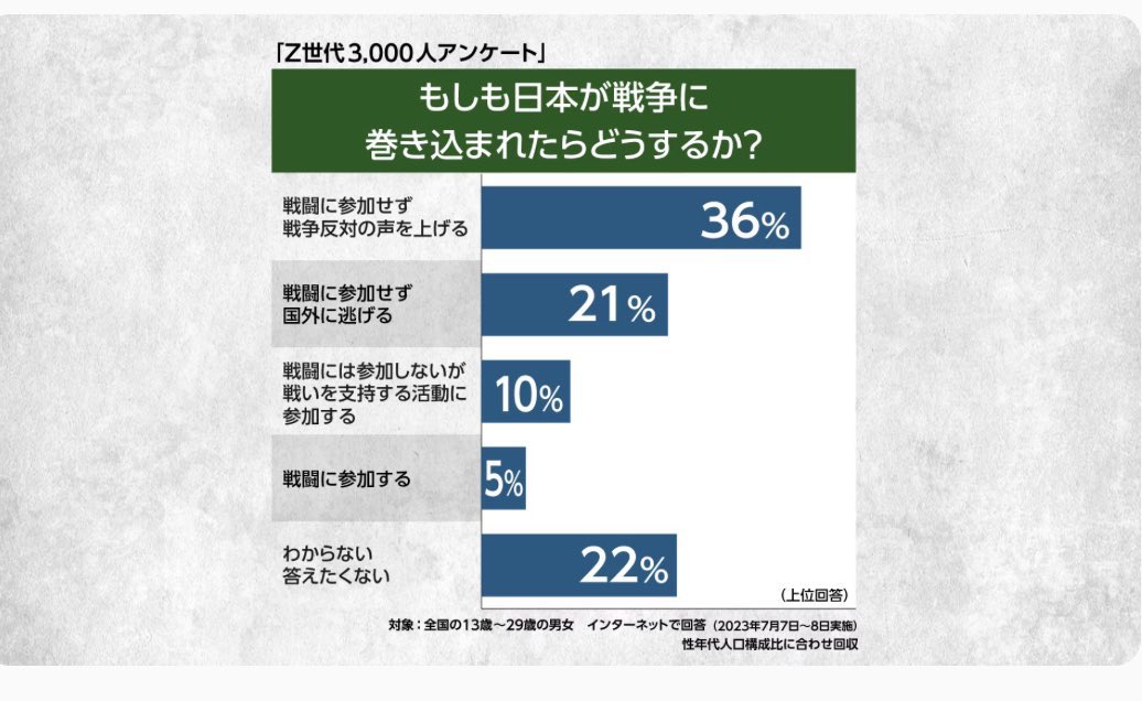 【超悲報】Z世代さん、戦争になっても国を守る気がない